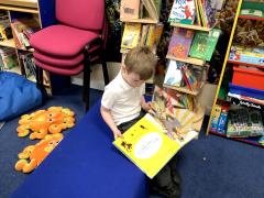 RJ enjoying the library.