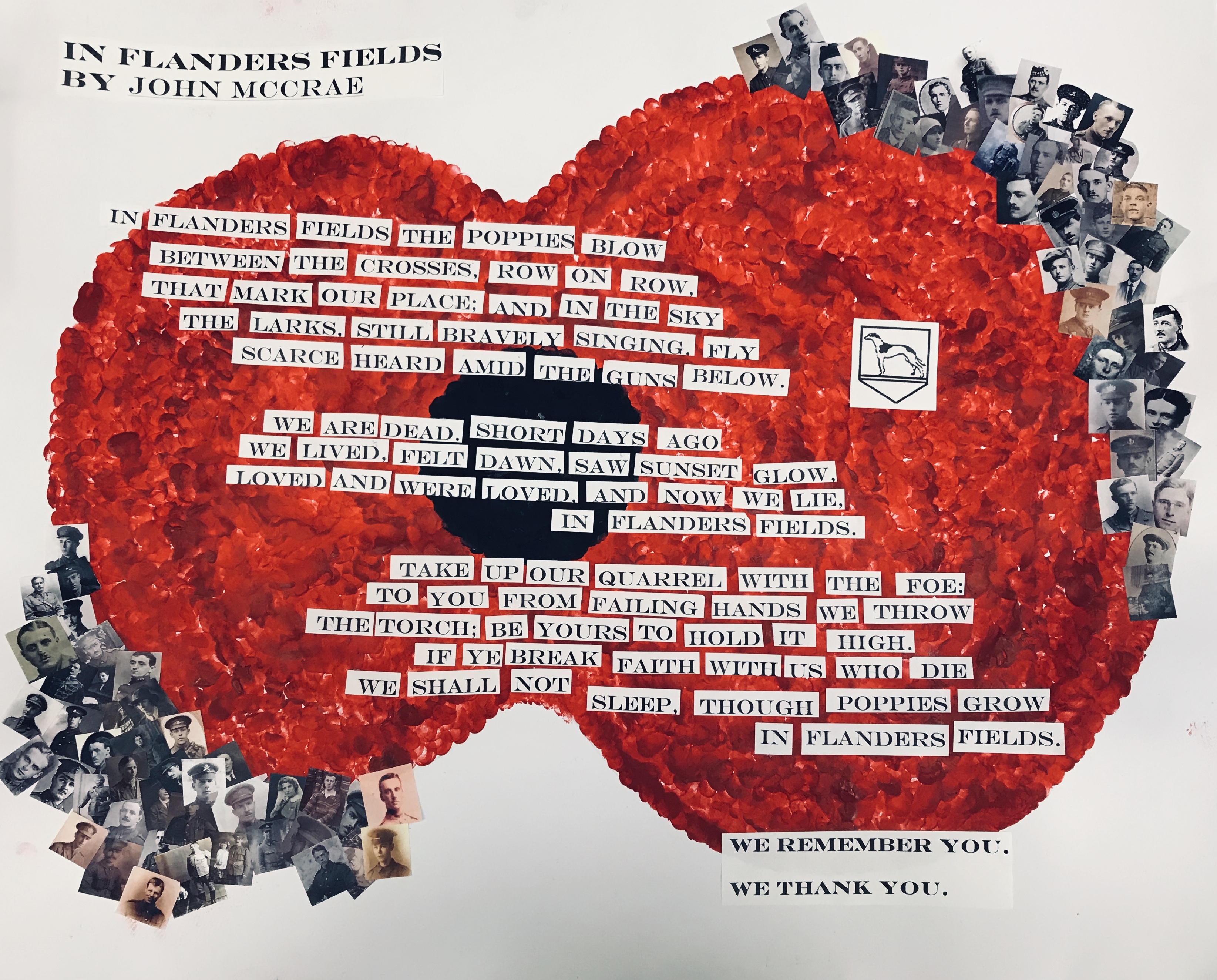 Also as part of the WW1 Centenrary, we created a poppy with every child's fingerprints showcasing the famous and poignant poem 'Flanders Fields'.